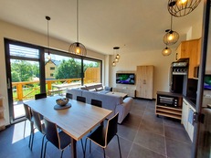 Im Gebäude im Erdgeschoss: Wohnzimmer mit Kochnische (Sitzecke, Terrasse und Bergblick, TV, Esstisch + Stühle, Kühlschrank mit Gefrierfach, Backofen, Herd, Wasserkocher, Toaster, Geschirrspüler), 1x3 Schlafzimmer (Dreibettzimmer - Etagenbett mit einem niedrigeren, geräumigeren Bett.), Badezimmer (Dusche, Waschbecken, Toilette), Kinder - und Gesellschaftsspiele, Zugang zur Terrasse. Im Gebäude auf dem Boden: 1x4 Schlafzimmer (Doppelbett und 1x ausziehbares Doppelbett) mit Badezimmer (Dusche, Waschbecken, Toilette), 1x4 Schlafzimmer (Doppelbett und 2x Einzelbett) mit Badezimmer (Dusche, Waschbecken, Toilette). Heizung: Fußboden/Klimaanlage. Baby-Bettchen. Buchen Sie hier, buchen Sie direkt mit dem Betreiber.